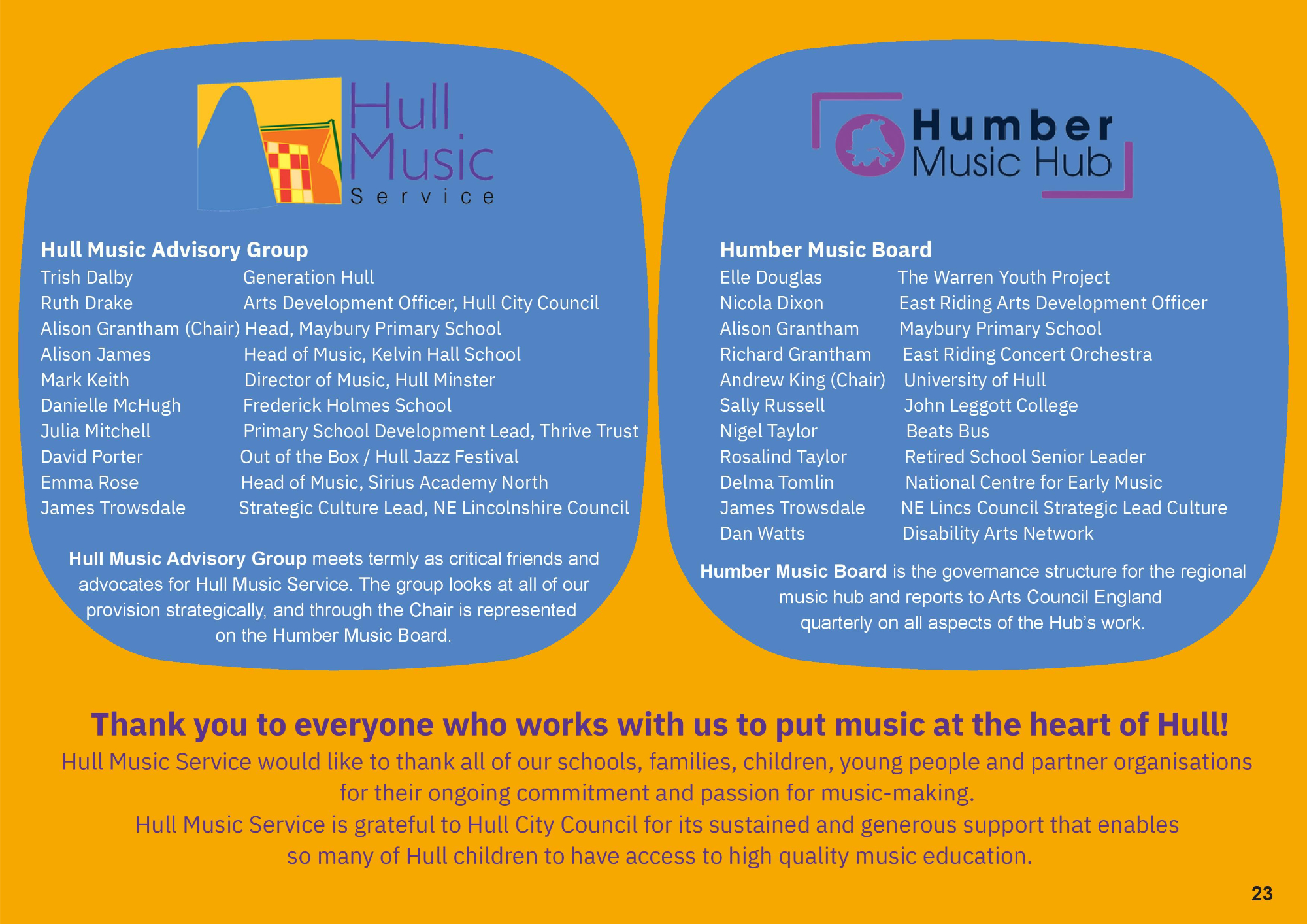 Thank you to everyone who works with us to put music at the heart of Hull!