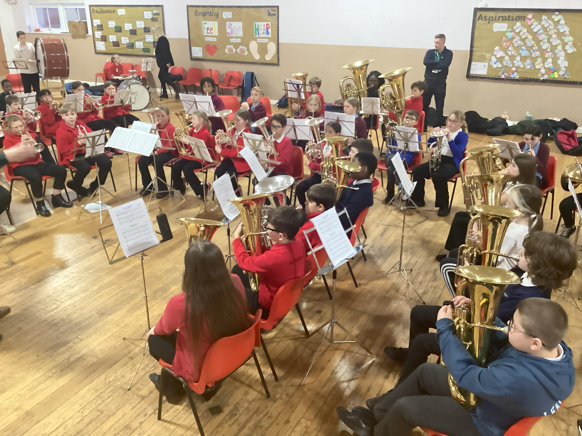For our third session, the East Hull Brass Project moved to a new home as we were hosted by Alderman Cogan’s C of E Primary Academy. The main hall provided a fantastic space for what turned out to be our biggest rehearsal yet!